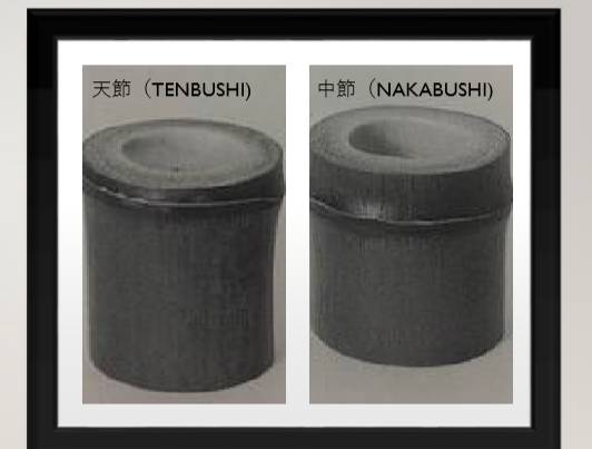 中節NAKABUSHI: Lid rest for Winter: made of bamboo which node is on top 天節TENBUSHI: Lidrest for Summer: made of bamboo which node is middle