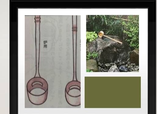 The two types used for temae are made of bamboo. The waiter ladle used at the TSUKUBAI is made of Japanese cedar.