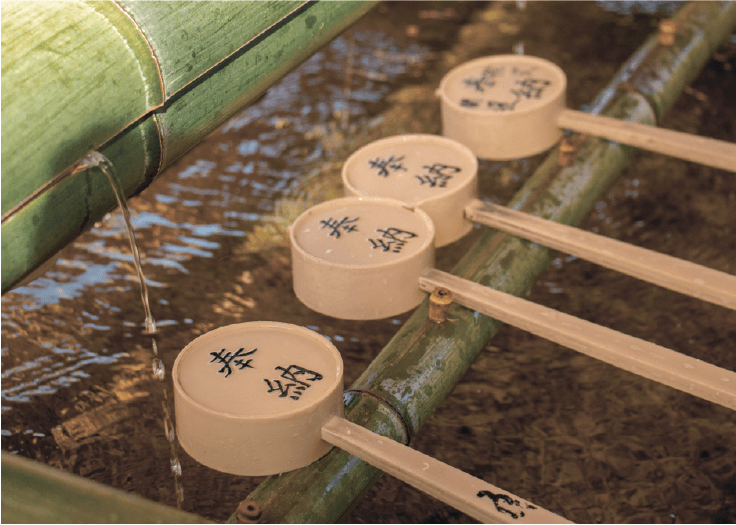 Temizuya: Water basin for the purification ritual. Purification is the most important aspect of Shintoism. The purification ritual 1- Pour water to your left hand 2- Pour water to your right hand 3- Pour water to your left hand and cleans your mouth with that water. 4- Tilt the scoop 90 degrees and let the remaining water clean the scoop.