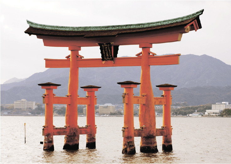 Tori gates: Tori gates separate the secular world and the sacred world. When entering and leaving under the torii gate, one should bow and not occupy the middle point. The middle is reserved for the deity to walk. Torii gates are always the red/vermillion color which keeps evil spirits away and which represents the “purified.” Sometimes there are torii gates but no shrine (e.g. in a lake) that torii gate is for the deity that is inside the lake.