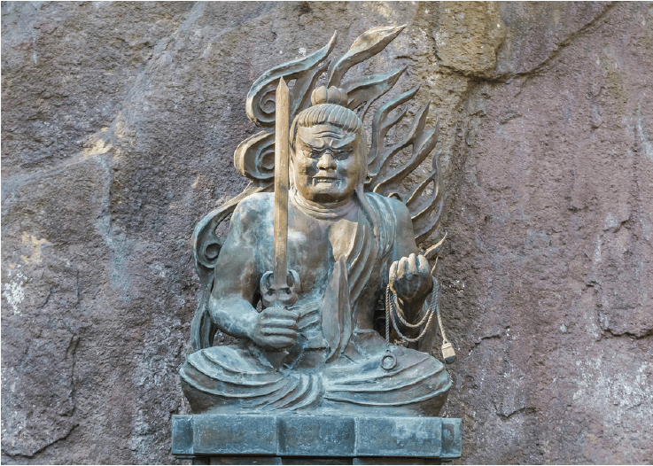 Wisdom Kings: The statues of five heavenly kings are often found in Buddhist temples. The most common one is Fudo Myoo (Acala) who holds a sword in one hand (wisdom cutting through the ignorance) and the rope in another (to catch demons).