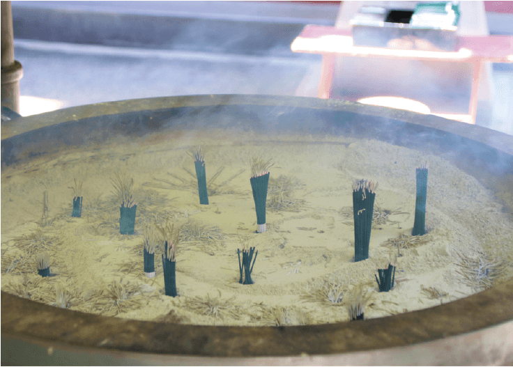 Incense burner (Jokoro): Burning incense is a typical Buddhist tradition. Buddhist temples have a jokoro and people believe if the smoke touches the body it would heal the body.