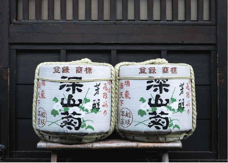 Kazaridaru: Sake barrels. Rice wine breweries or wealthy people donate these barrels which weigh around 30 liters and cost around 1000 USD. On certain occasions, weddings and celebrations, these barrels are broken and people drink sake from the square-shaped wooden cups. The ones displayed in shrines tend to be used empty ones.