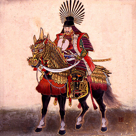 Toyotomi Hideyoshi on his horse and his unique helmet