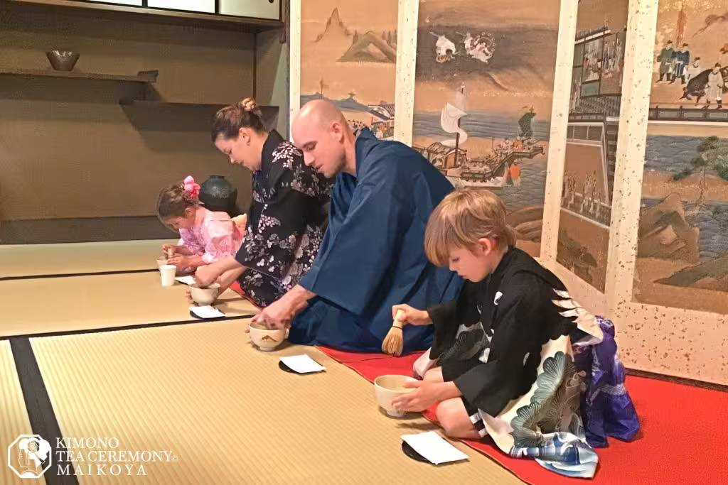 The best thing at Maikoya is that you can dress up and enjoy the ceremony in an authentic tea ceremony room without leaving our facility. We are the only place in Kyoto where a group of any size can get engage in various cultural activities, including tea ceremony, in a traditional setting.
