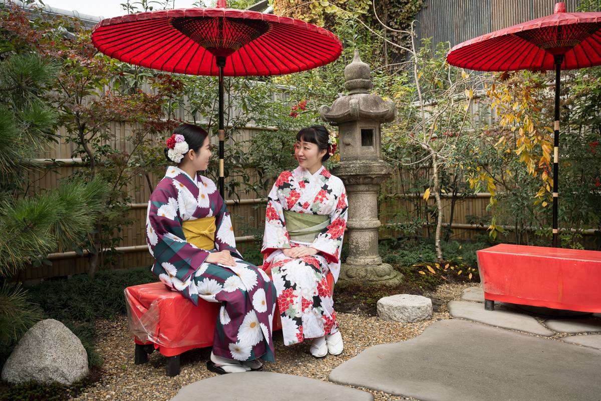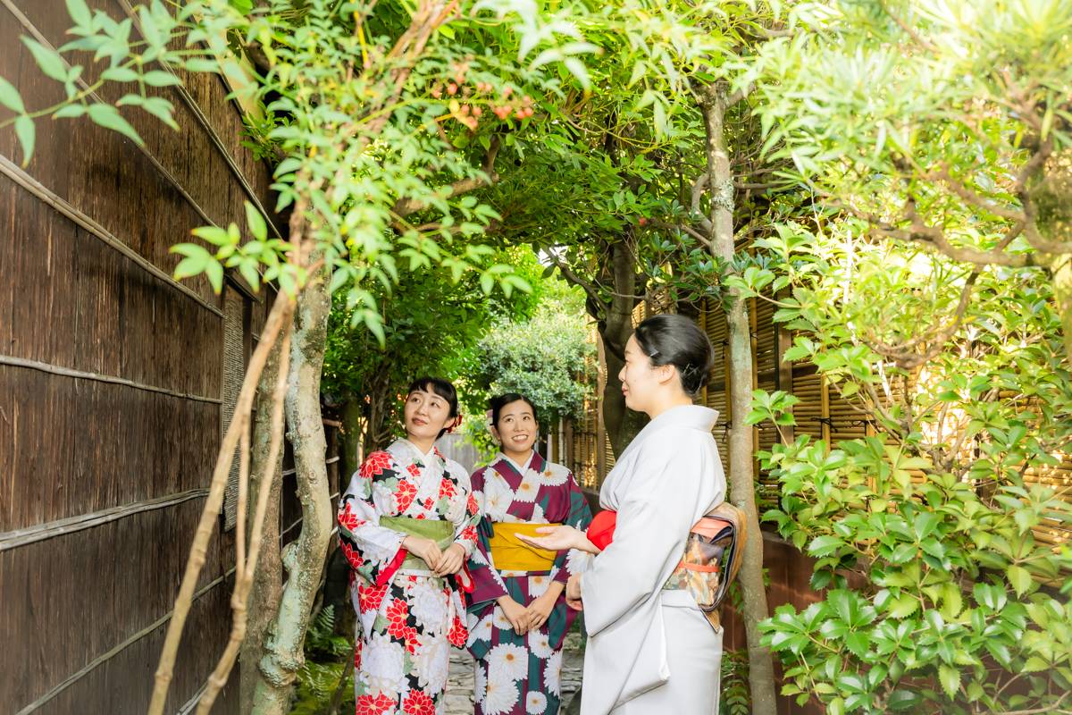 You can take many photos by wearing an authentic kimono in the beautiful Japanese gardens of Maikoya. You can even wear your kimonos outside after your tea ceremony, and take a stroll down the historical Gion District.