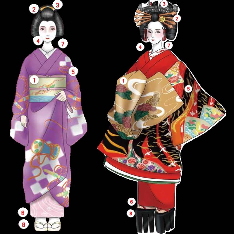 Geisha and Oiran look completely different. Unlike the oiran, It is significantly time-consuming for a geisha to put on and take off her clothes.