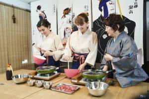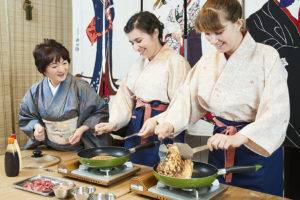 You will make Okonomiyaki. You can experience cooking wearing Kimono costume. Kimonos are prepared for both males and females.